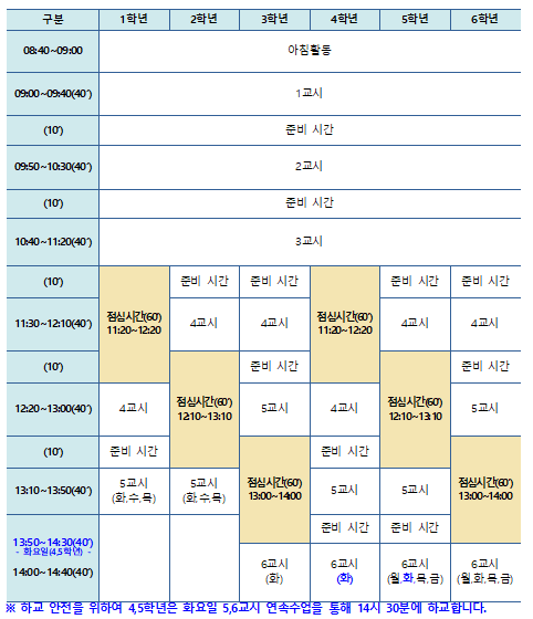 2025학년도 학교일과운영 안내